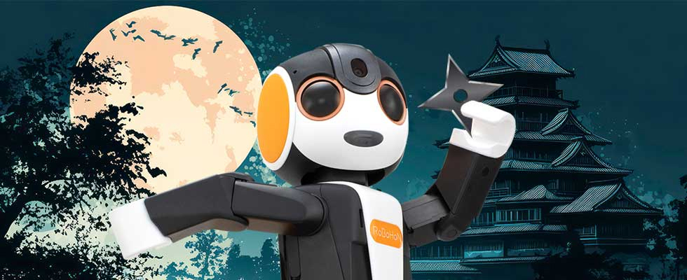 忍びのごとく走ったり、手裏剣を投げてみたり、ロボホンが忍者になりきって、楽しく遊びます。